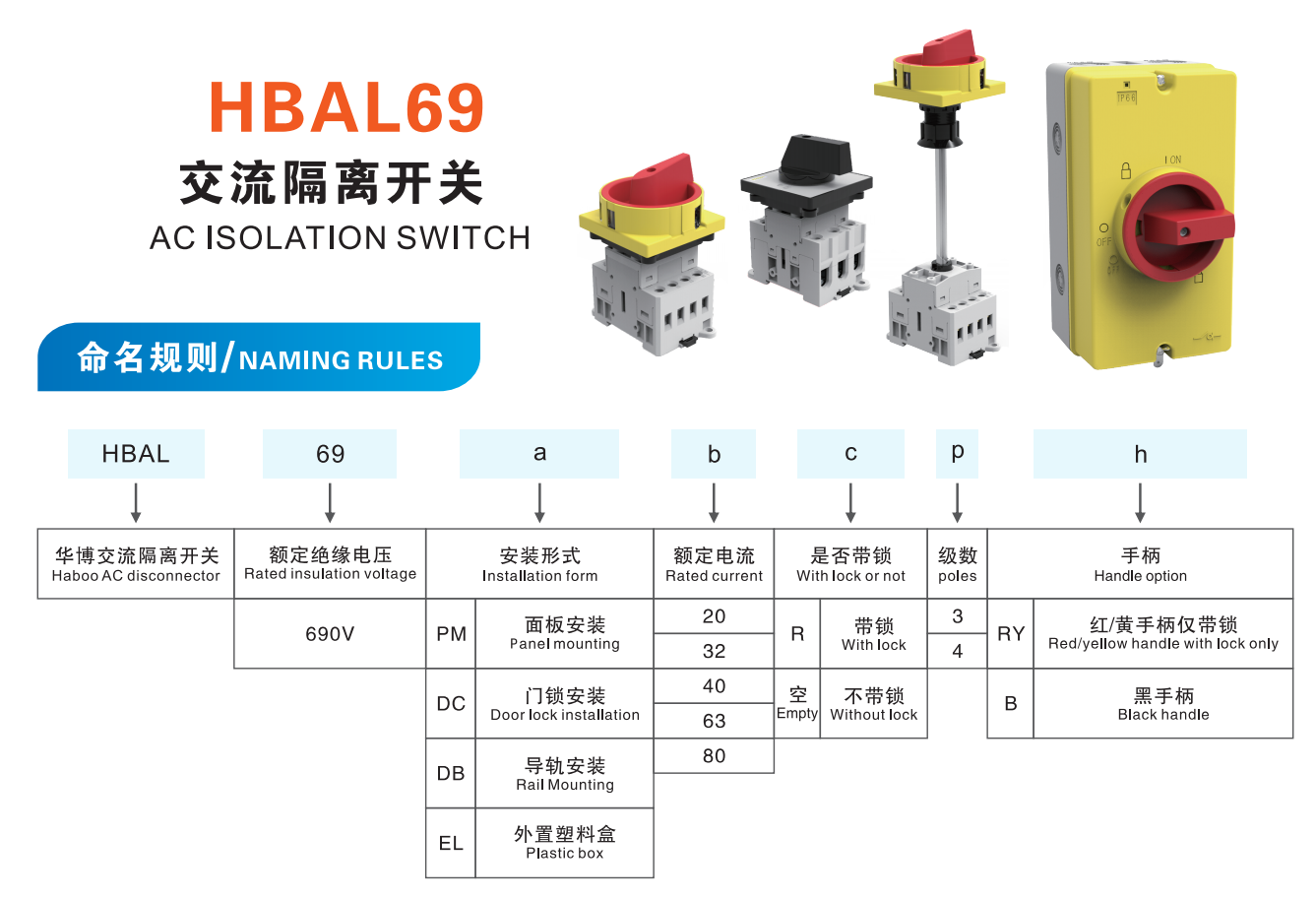 型號:AL69外置盒安裝交流隔離開關